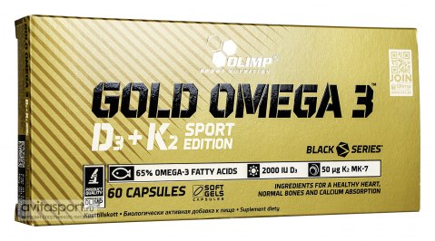 Gold Omega 3 D3+K2 Sport Edition компании Olimp - диетическая добавка с высоким содержанием омега-3 с витаминами D3 и K2. Превосходное мелкодисперсное рыбье масло с 65%-ной концентрацией со стандартизованным содержанием омега-3 жирных кислот, дополняющих диету необходимыми жирными кислотами. Gold Omega 3 D3+K2 Sport Edition также содержит большое количество натурального витамина К, в его наиболее усвояемой и активной форме - менахинон-7 (витамин K2). Продукт был дополнен 2000 МЕ витамина D (D3).