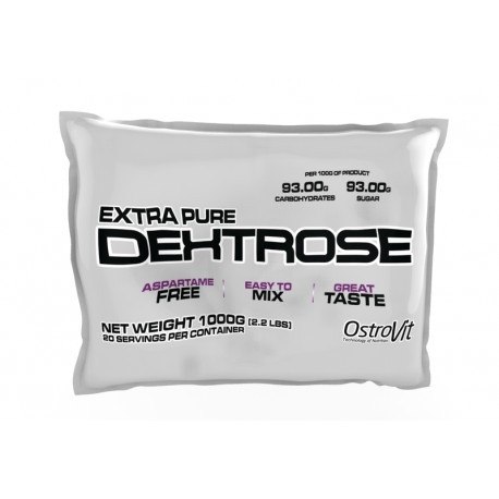 Extra Pure Dextrose OstroVit 1000 гр (Экстра Пуре Декстроза Островит) – это высококачественная декстроза, которая характеризуется очень коротким временем усвоения. Декстроза является простым углеводом, который в очень коротком времени поставляет нашему организму необходимую энергию. Кроме того, Ostrovit Extra Pure Dextrose влияет на секрецию инсулина, который улучшает усвоение креатина. Преимущества декстрозы Декстроза повышает уровень сахара в крови и быстро восстанавливает запасы гликогена, что делает её отличной добавкой для тех, кому необходим быстрый энергетический толчок. Она подходит для множества людей и может увеличить усвоение других питательных веществ. Кому подходит? Декстроза подходит для широкого спектра спортсменов, Углеводы могут быть использованы до и сразу после тренировки для достижения наилучших эффектов. Декстроза был бы идеальным для командных видов спорта или для долгих соревнованиях, которые истощают запасы гликогена в мышцах.